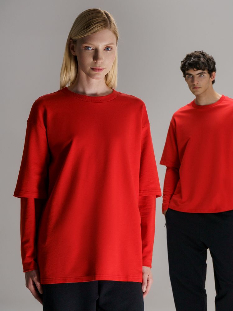 Футболка оверсайз в трендовом исполнении double sleeve (с двойным рукавом) — отличный вариант для создания повседневного образа. Легкая дышащая хлопковая ткань с гладкой трикотажной фактурой приятна к телу, а расслабленный оверсайз силуэт делает футболку Kosmos идеальной для любых жизненных маневров.